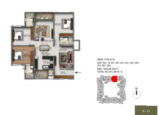 | S.No. | BHK | Area (SQ. FT.) | Price/Sq.Ft | Base Cost |