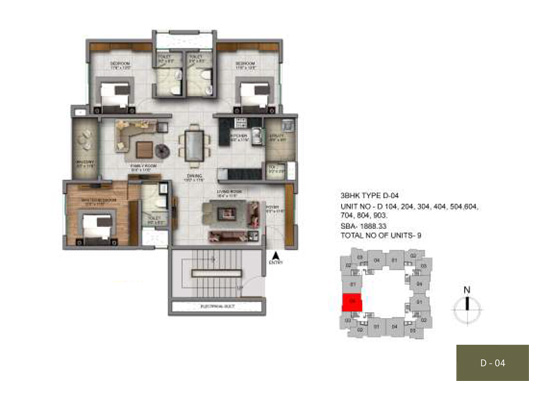 | 18 | 3BHK | 1888 | ₹ 4750 | ₹ 89.68 L |