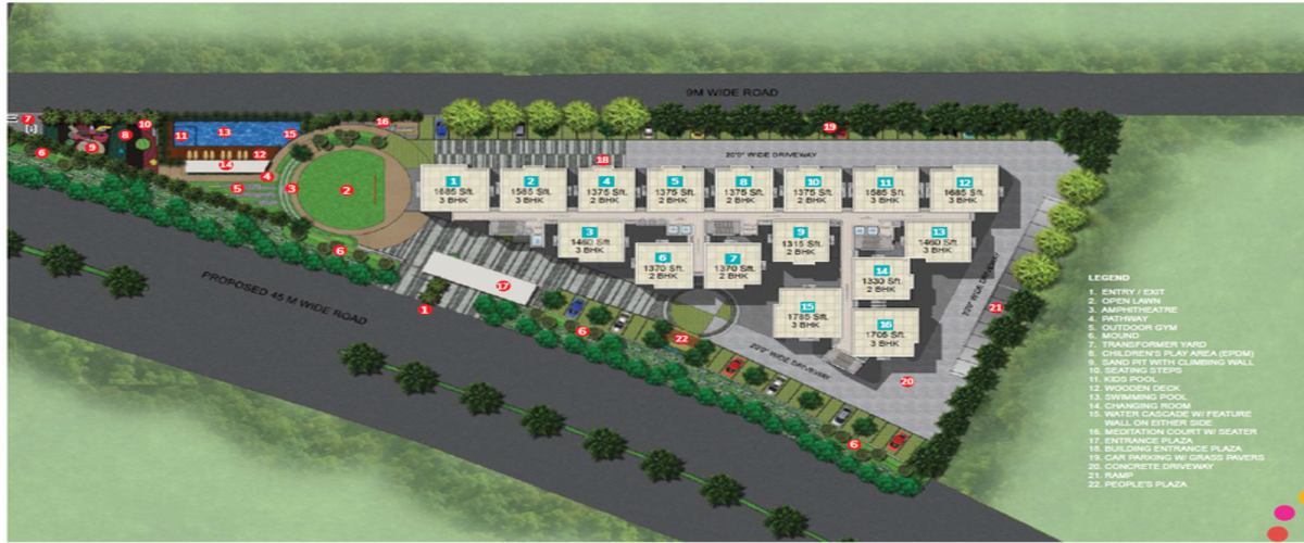 DSR RR Avenues consists of numerous luxury buildings at Yelahanka New Town, Bangalore. This project occupies a land area of 1.27 acres. DSR RR Avenues Bangalore is situated. In this project, there are all the facilities that a homeowner would want for a contemporary property including CCTV Cameras, Community Center, Swimming Pool, Gymnasium, Play Room, Elevator, Club House, 24 hr backup electricity, Spa, and 24 hr water services. The area is part of Yelahanka New Town's suburban neighborhood. There are 2 and 3 BHK Apartments. Broad roads connect DSR RR Avenues to neighboring villages. Residents of the locality have easy access to community utilities like schools, colleges, hospitals, recreational areas, and parks. The facilities within the complex are thoughtfully created. Address: KHB Layout, Yelahanka New Town, Bangalore, Karnataka, INDIA.