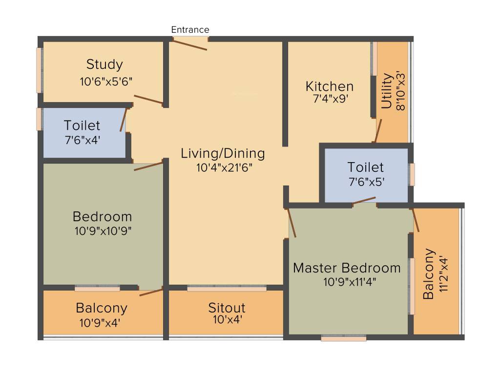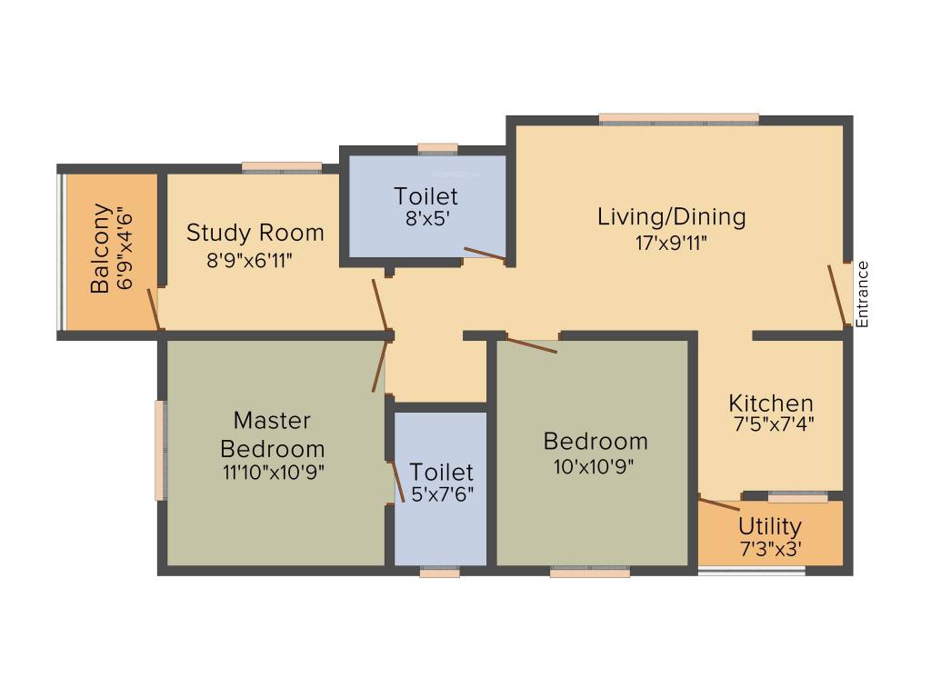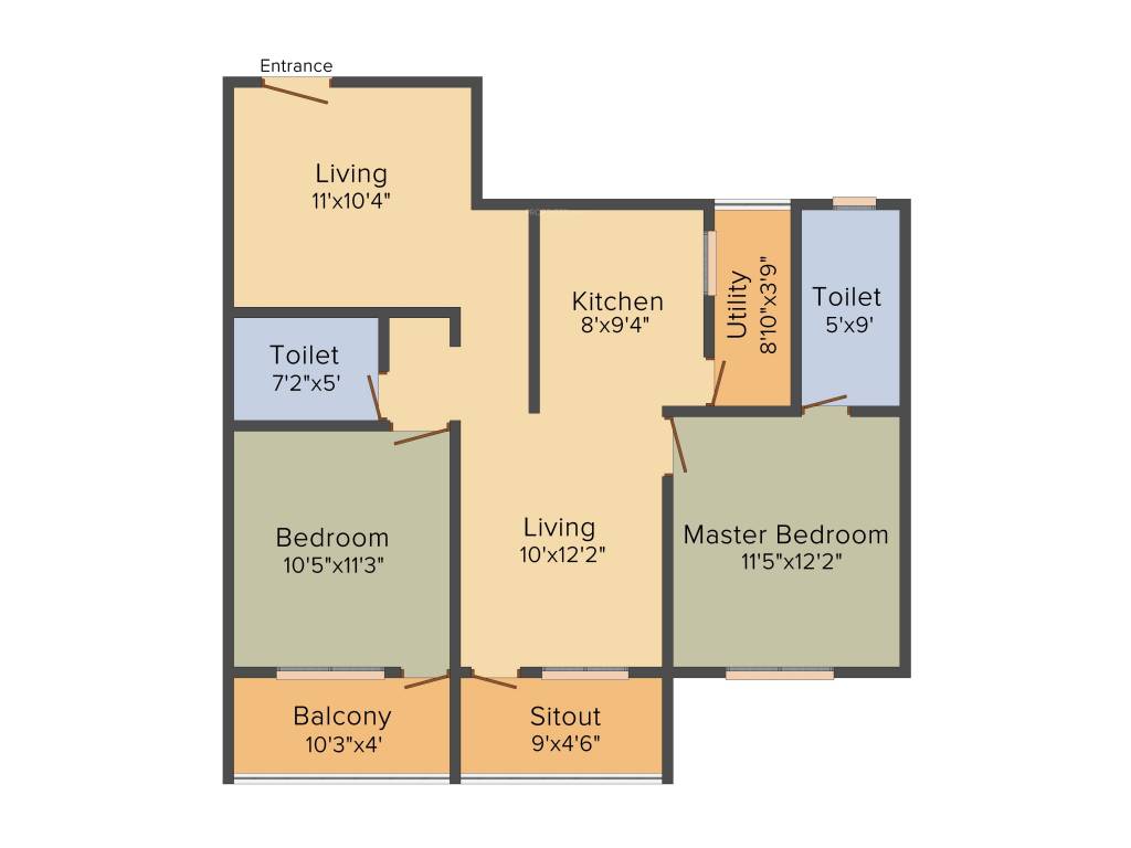 | 2 | 1BHK | 672 | ₹ 3500 | ₹ 23.52 L |