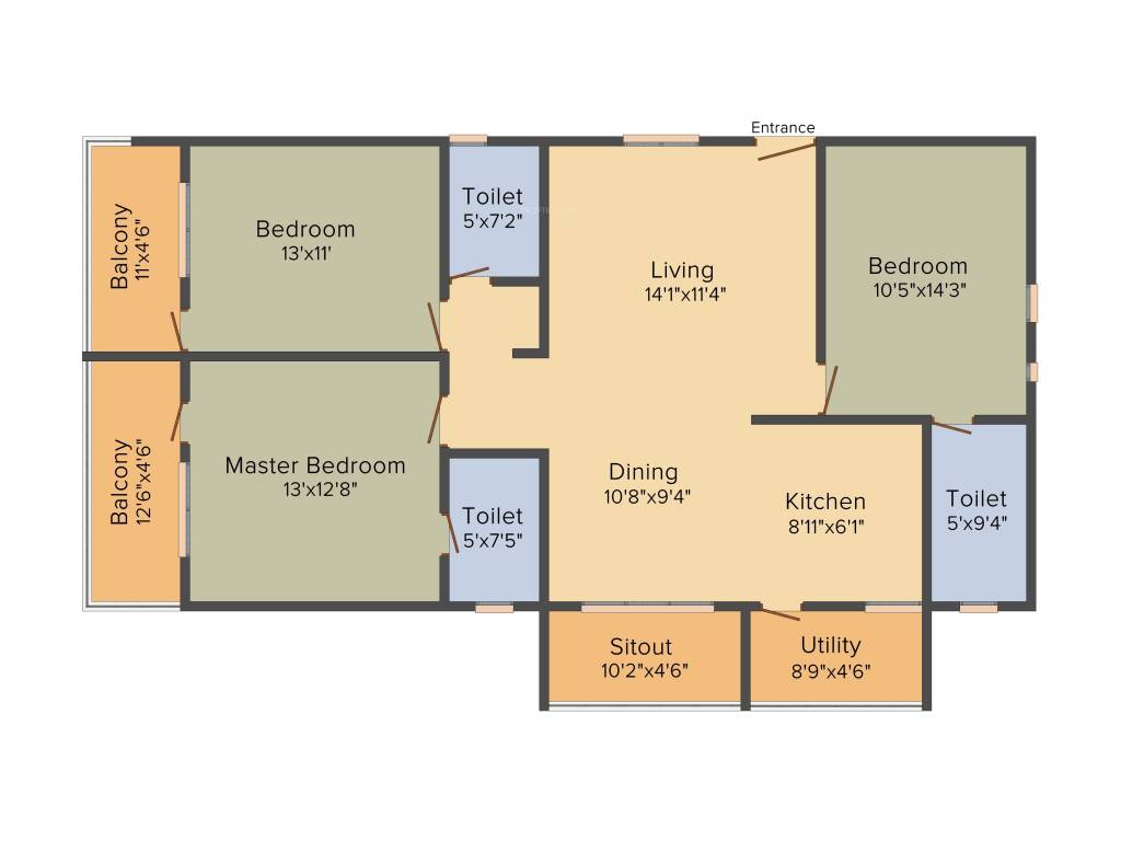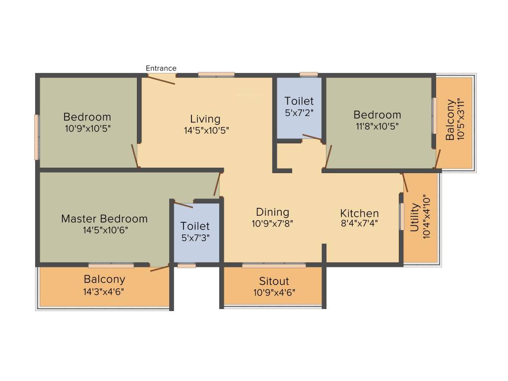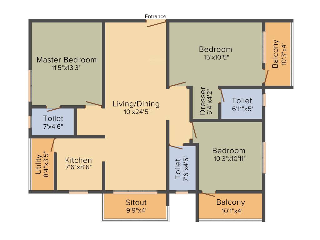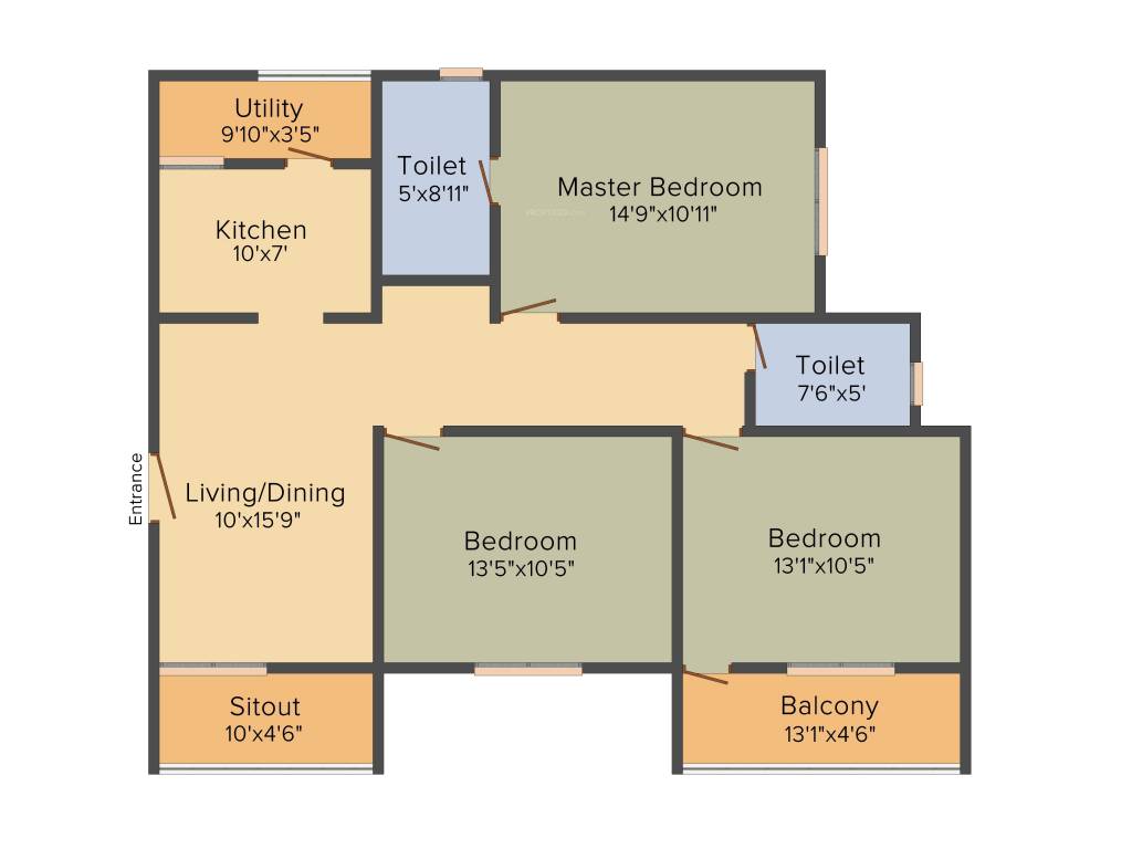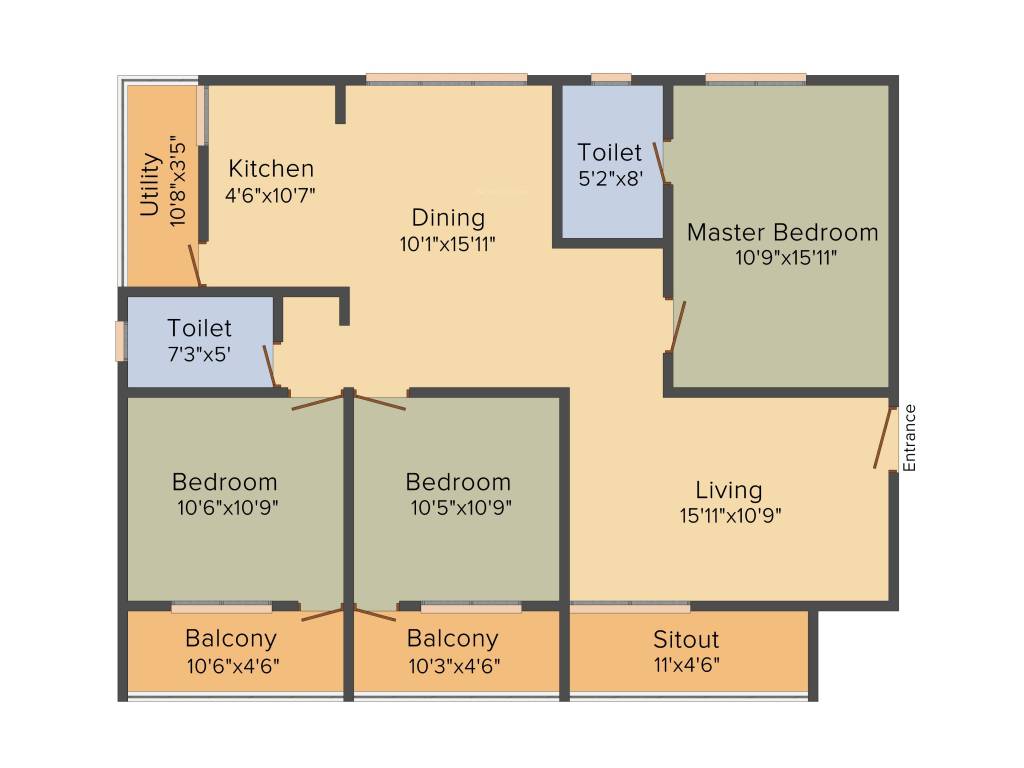 | 11 | 3BHK | 1411 | ₹ 3500 | ₹ 49.39 L |
