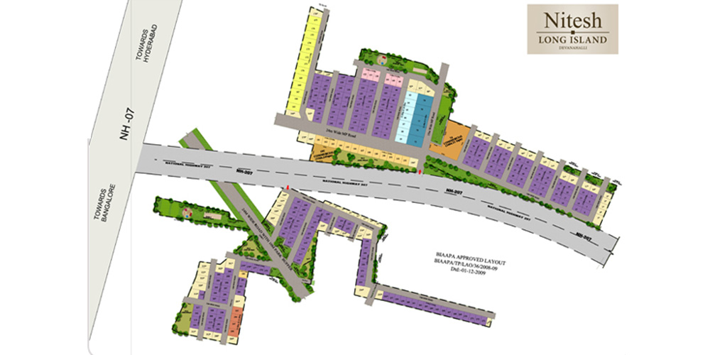 <p>RERA STATUS</p> <p> REGISTERED Reg No: PRM/KA/RERA/1250/303/PR/180507/001616</p> Nitesh Long Island located on Devanahalli main road is a gated community with top of the line infrastructure and amenities. With its internationally designed landscape features, promenades and manicured gardens with wide roads and pathways, this development is truly the future of Bangalore. A large capacity water treatment plant and overhead tank has water line termination to every plot. Power supply cables are housed underground for maximum safety and convenience. A well thought through combination of gardens, water bodies, play areas, etc. make this development give you a true international lifestyle.