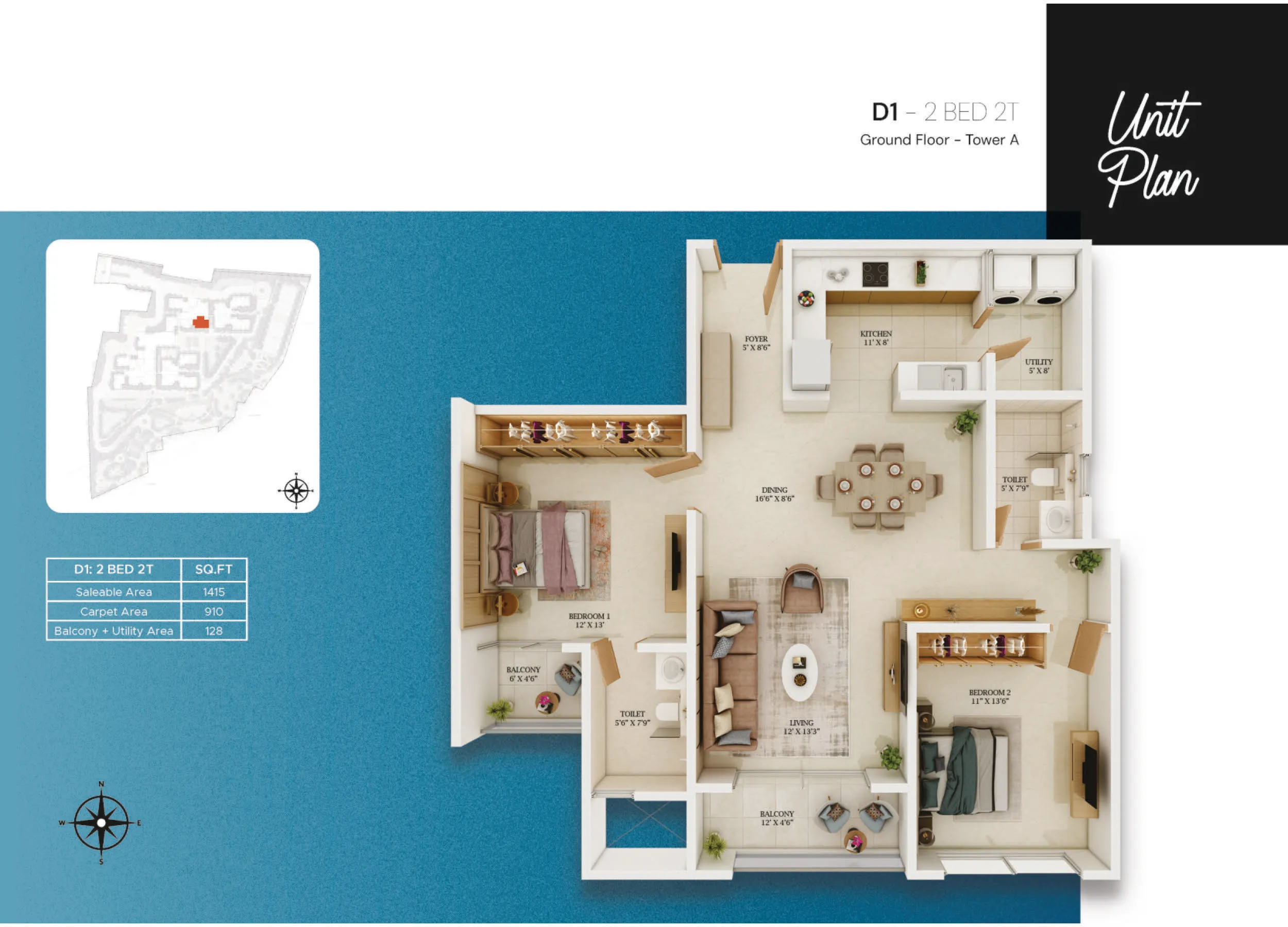 | 3 | 2BHK | 1415 | ₹ 19202 | ₹ 2.72 Cr |