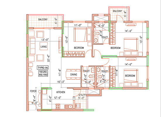 MASTER BEDROOM: LAMINATED WOODEN FLOORING BEDROOMS: VITRIFIED TILES (600MM X 600MM) OF REPUTED MAKE LIVING AND DINING ROOM: VITRIFIED TILES TOILETS: ANTISKID CERAMIC TILES UTILITY FLOORING: ANTISKID CERAMIC TILES LOBBY FLOORING: COMBINATION OF GRANIT