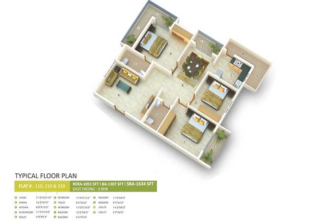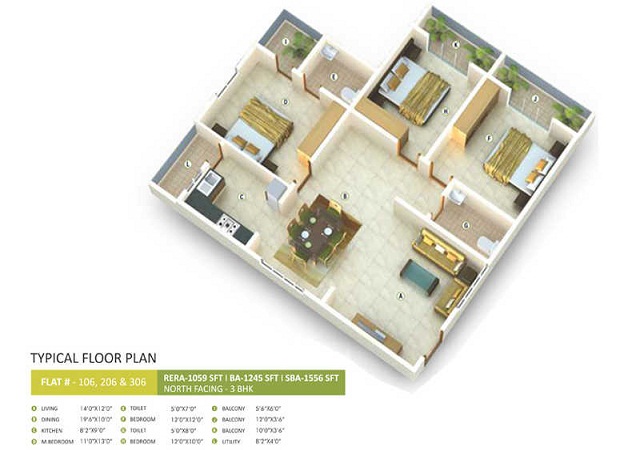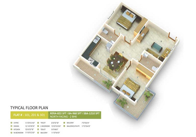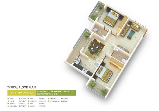 | S.No. | BHK | Area (SQ. FT.) | Price/Sq.Ft | Base Cost |