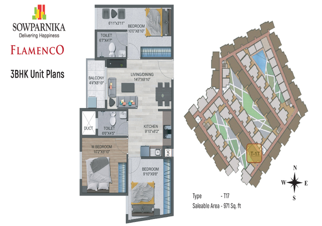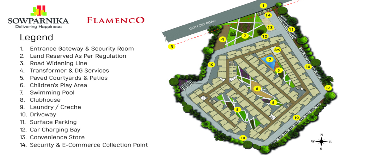 Sowparnika Flamenco is thoughtfully planned to ensure you lead a comfortable and secure lifestyle. Special consideration has been given to the need for children and the elderly. From beautifully landscaped courtyards and patios to a swimming pool. Flamenco offers various facilities like launderette, e-commerce collection point, electric car charging bays and much more.
