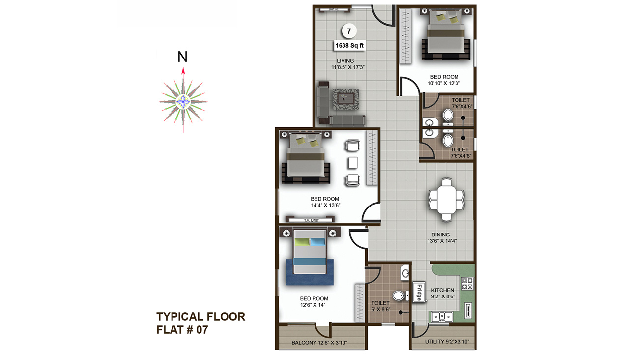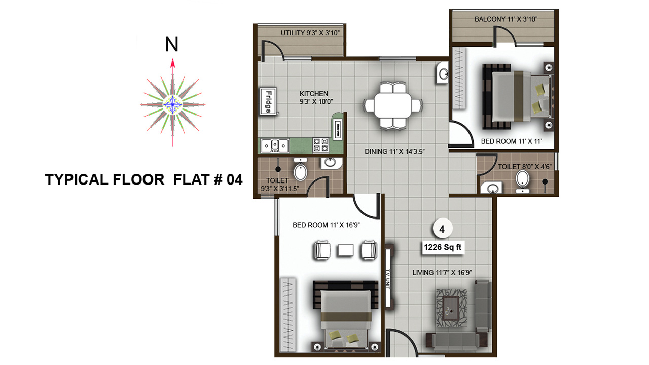 | S.No. | BHK | Area (SQ. FT.) | Price/Sq.Ft | Base Cost |