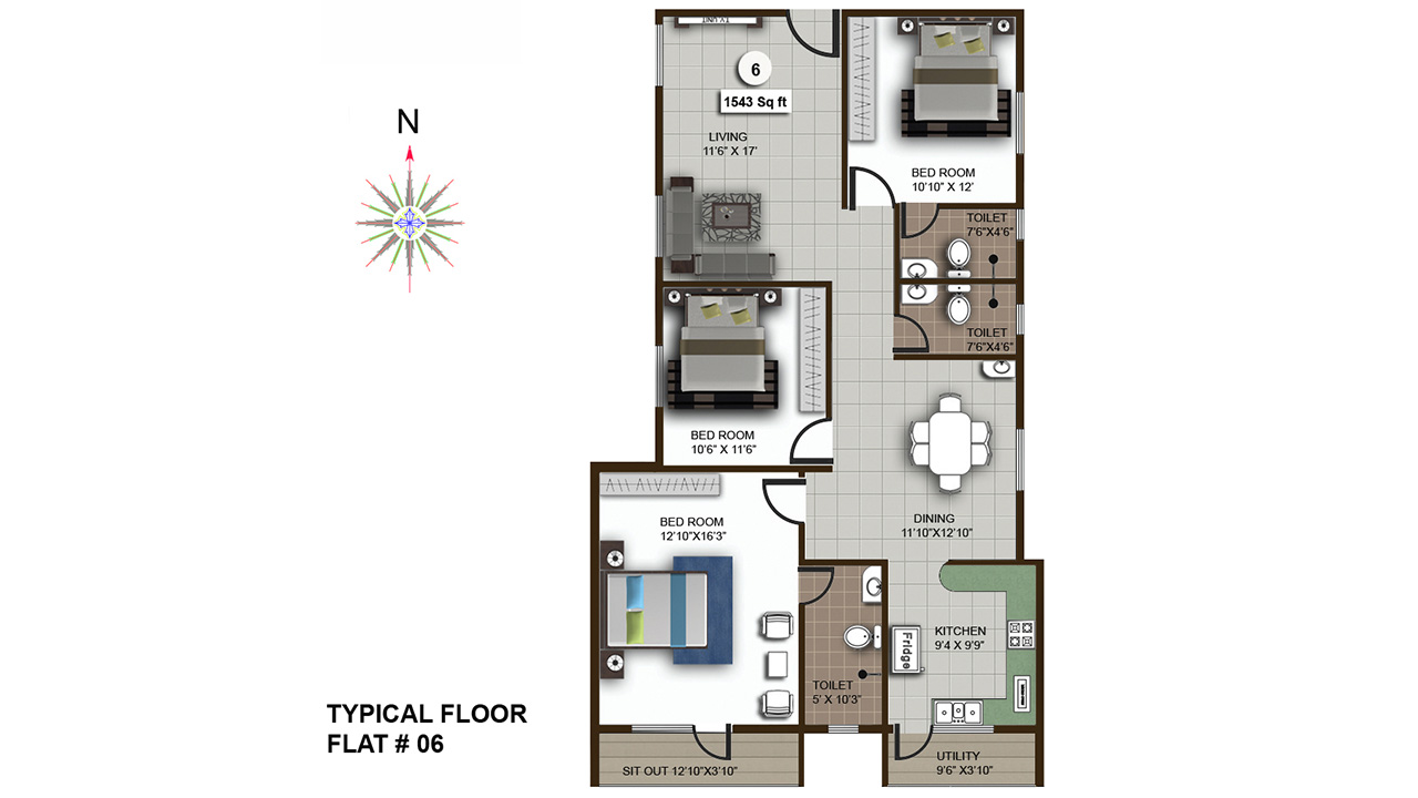 | 12 | 3 BHK | 1543 | ₹ 4000 | ₹ 61.72 L |