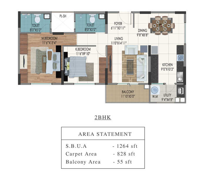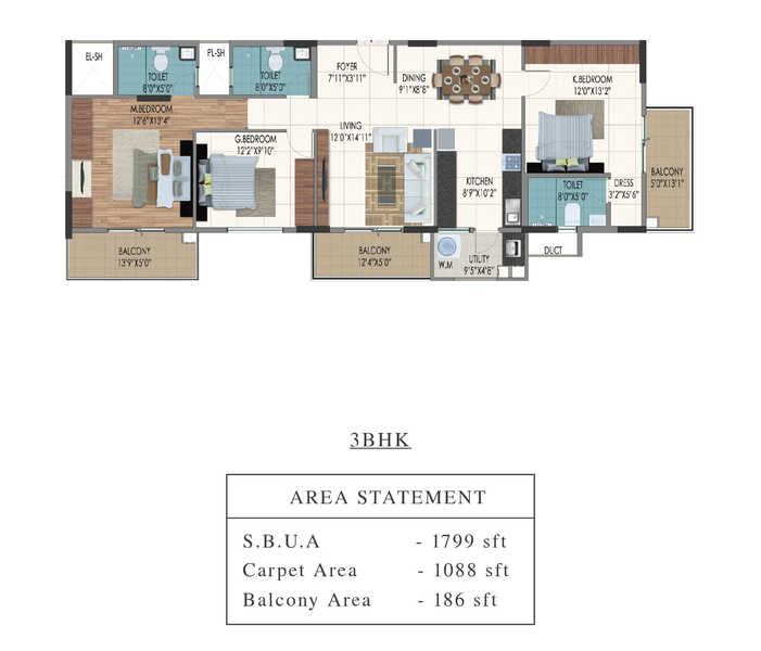 COMMON AREA, CLUB HOUSE LOUNGE / GF LOBBY: ITALIAN MARBLE / GRANITE FLOORING STAIRCASES/CORRIDORS: GRANITE FLOORING. LIVING, DINING, BEDROOMS AND KITCHEN: 800 X 800 MM SIZE DOUBLE CHARGED VITRIFIED TILES. MASTER BEDROOM: LAMINATED WOODEN FL