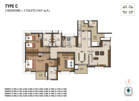 | S.No. | BHK | Area (SQ. FT.) | Price/Sq.Ft | Base Cost |