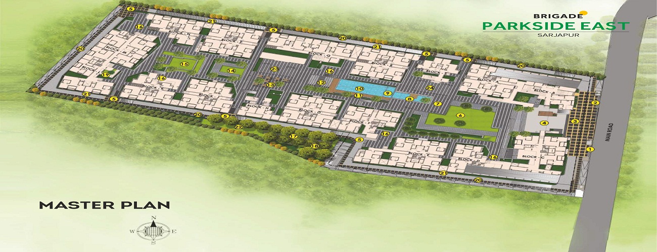 Brigade Parkside East, launched by Brigade Group, is a residential enclave spread over 4 acres of land at Sarjapur and is set amidst a beautifully landscaped central area. The architectural design is such that is provides most of the apartments a very clean view of the serene and lush green landscaped courts. The landscaped central area has been thoughtfully designed so that multiple activities can take place at different times during the day. This landscaped area comprises of varying levels consisting of swimming pools, sitting places, etc. so that these can be utilized for different outdoor activities.. Consisting of 237 units of 1 & 2 BHK, this residential enclave is at prime location with RGA Tech Park just 600 M away, Carmelaram railway station 750 M, Sakra World Hospital 5 Kms, and RMZ Ecoworld just about 5.6 Kms.