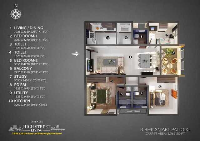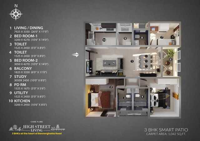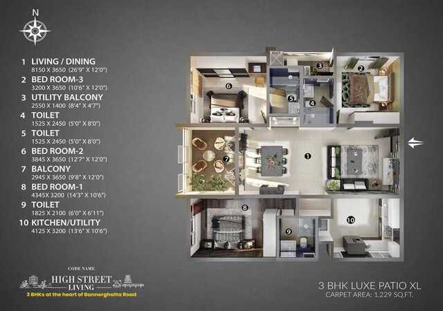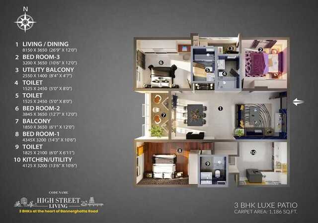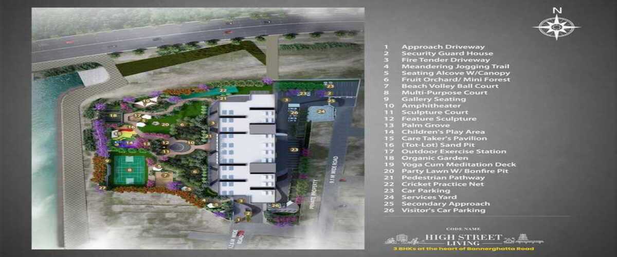 Codename High Street Living is the latest launch of Habitat Ventures, Bengaluru’s very own International Award Winning Architect-Developer. Exclusive 3 BHK community with just 206 homes, overlooking 3 acres serene Arekere lake Tucked in 300 mts from Bannerghatta Main Road, just 750 m from the upcoming Hulimavu metro Just 15-30 mins drive away from Dairy Circle, JP Nagar, Silkboard, MG Road, E-City Loaded with lifestyle with 30+ amenities & a 4-storey clubhouse with an infinity pool 85% open area with 3-acres of the lakeside promenade & 300+ trees 3 Bed homes here come with a large patio which can be the DIY space for your herb garden, semi-outdoor WFH space, kids play area, alfresco bar, and dining to homecare or a library No common wall design to ensure privacy & maximum light & ventilation Priced at 20-25% better value than the market. Easy payment offer- Pay just 10% & Zero Pre-EMI till possession*