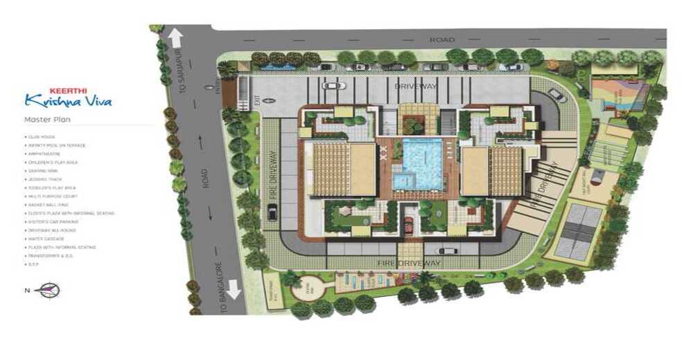 Keerthi Krishna Viva in Sarjapur Road, Bangalore East by Keerthi Estates Builders is a residential project. The project offers Apartments with perfect combination of contemporary architecture and features to provide comfortable living. The Apartment are of the following configurations: 2BHK and 3BHK. This is a RERA registered project. The project is spread over a total area of 1.2 acres of land. It has 60% of open space. Keerthi Krishna Viva has a total of 2 towers. The construction is of 17 floors. An accommodation of 136 units has been provided. Offering 45 amenities for better living experience.