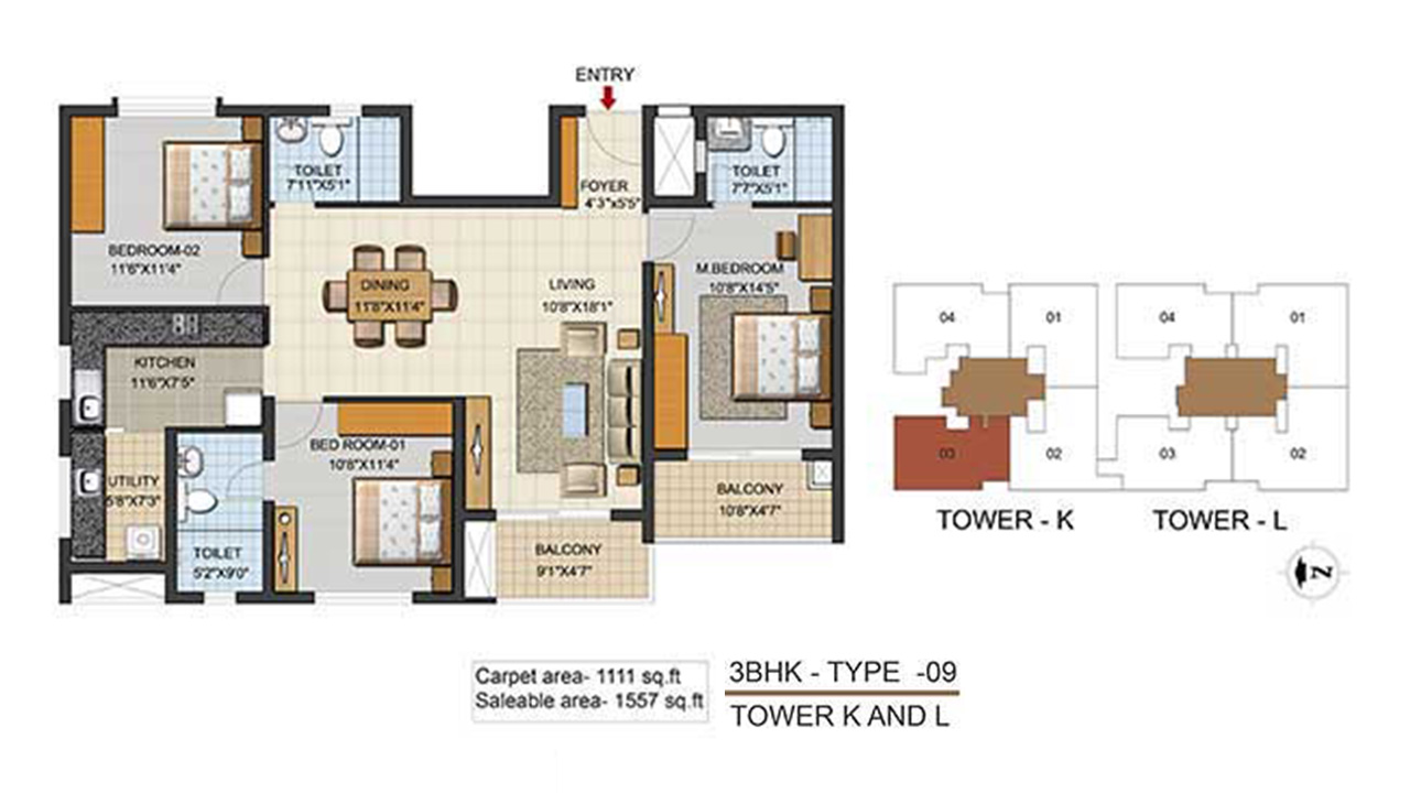 3 3 BHK 1557 ₹ 5240 ₹ 81.59 L