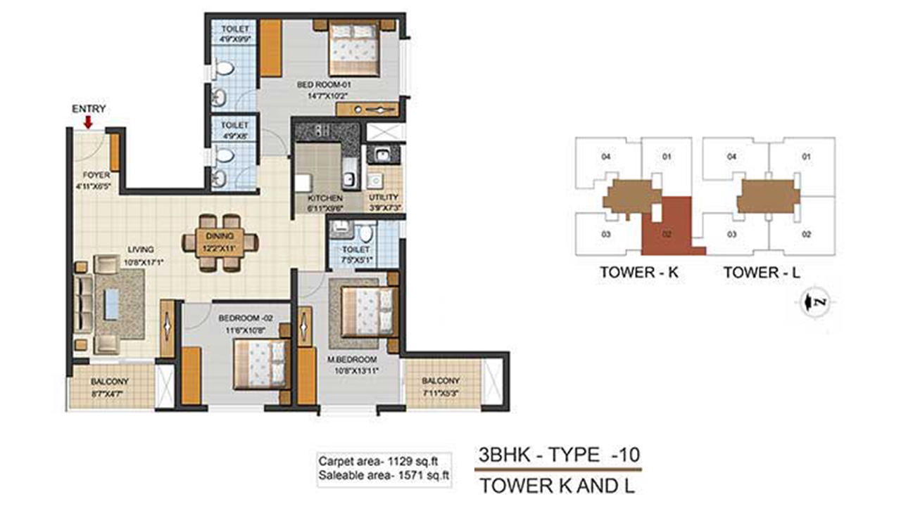 5 3 BHK 1571 ₹ 5240 ₹ 82.32 L