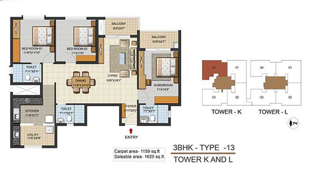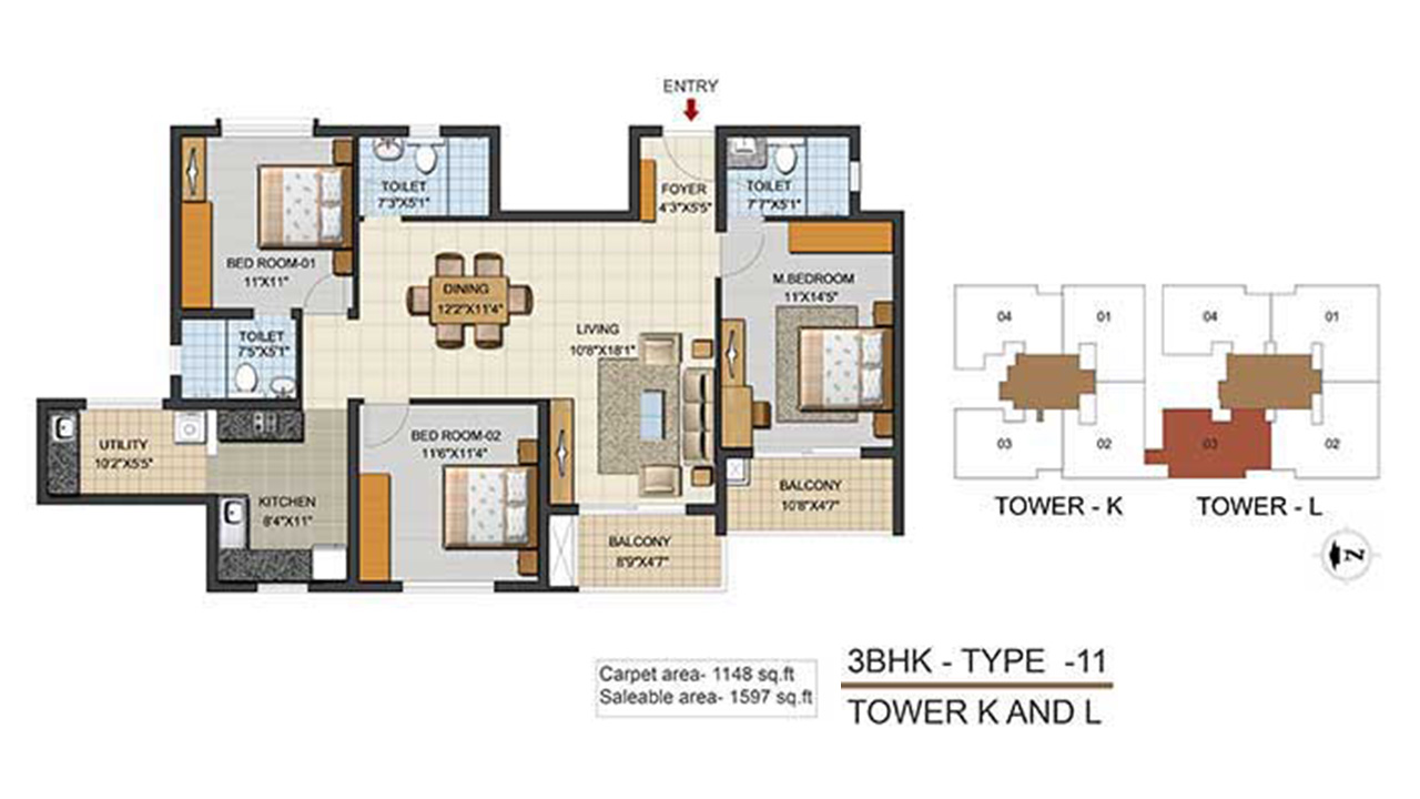 S.No. BHK Area (SQ. FT.) Price/Sq.Ft Base Cost