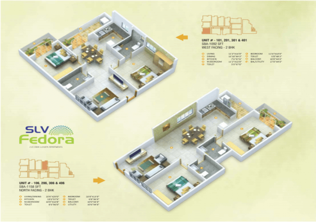 SLV Fedora is an unmatched Residential property located in Yelahanka, Bangalore. The project offers plenty of benefits that includes prime location, comfortable and lavish lifestyle, great amenities, healthy surroundings and high return. Location Advantages:. SLV Fedora is strategically located and provides direct connectivity to nearly all other major points in and around Bangalore. It is one of the most reputable address of the city with easy access to many famed schools, shopping areas, hospitals, recreational areas, public gardens and several other public amenities. Builder Information:. SLV Fedora is built by SLV Estates. It's a leading group in real-estate market in Bangalore. The team of this builder group is known for its superior work and punctual delivery of high-end Residential Apartments developed precisely in accordance with the pre-defined specifications. Units and interiors:. SLV Fedora offers 2 BHK and 3 BHK Apartments of many sizes. The magnitude of area included in this property vary depending on the number of BHK's. SLV Fedora is spread over an area of 0.71 acres with 4 floors. The master plan of SLV Fedora is designed in such a way that these Apartments comprises of wide space with proper ventilation at every corner of the house. The interiors are beautifully crafted with designer tiled floor, granite counter slab in kitchen, modern sanitary fittings in the bathroom and huge windows for proper sunlight. Comforts and Amenities:. The amenities offered in SLV Fedora are 24Hrs Water Supply, 24Hrs Backup Electricity, CCTV Cameras, Covered Car Parking, Gated Community, Gym, Intercom, Jogging Track, Landscaped Garden, Lift, Multi Purpose Play Court, Play Area, Rain Water Harvesting, Security Personnel and Water Purifer. All these features together assure many choices to relax, revitalise and relish at own home. Apart from that, suitable security devices are installed to ensure safety to the residents 24*7. Home-seekers can also go through updated photo galleries, floor plans, latest offers, reviews, builder info and locality info for better understanding of the project.