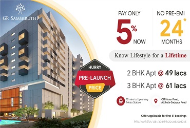 G R Samskruthi, is a sprawling luxury enclave of magnificent Apartments in Bangalore, elevating the contemporary lifestyle. These Residential Apartments in Bangalore offers you the kind of life that rejuvenates you, the one that inspires you to live
